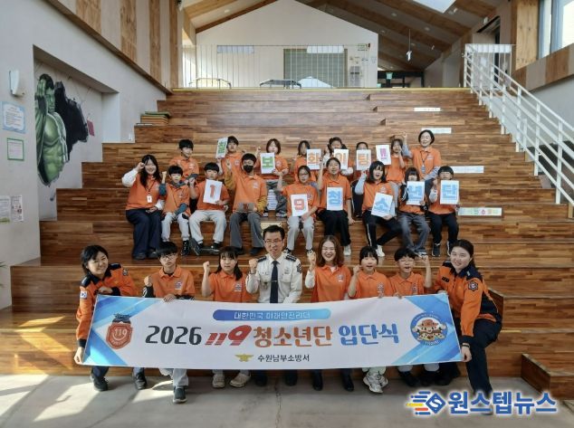 원스텝뉴스 이병희 기자 | 수원시청소년청년재단 칠보청소년청년센터는 3월 26일 수원남부소방서와 청소년의 재난대응 능력 향상과 지역사회 안전문화 확산을 위한 업무협약을 체결하고, 이어서 한국119청소년단 입단식을 진행했다.