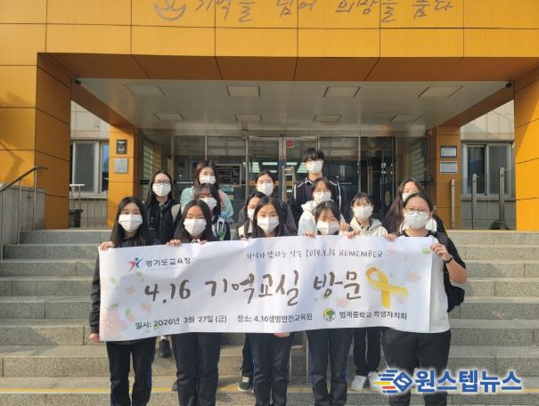 원스텝뉴스 이병희 기자 | 안양 범계중학교(교장 박경숙) 학생자치회 학생 20여 명은 3월 27일에 세월호 참사의 교훈을 되새기고 생명 존중 문화를 확산하기 위해 경기도교육청 4.16생명안전교육원(안산시 단원구 소재)을 방문했다. 이번 방문은 매년 범계중학교에서 진행되는 ‘국민 안전의 날’ 행사 진행에 앞서 학생자치회가 주도적으로 기획했다. 12년이라는 시간이 지나 학생들이 ‘세월호 사건’을 잘 체감하지 못하는 것을 인식하고 이를 먼저 느끼고 알리고자 한 것이다.
