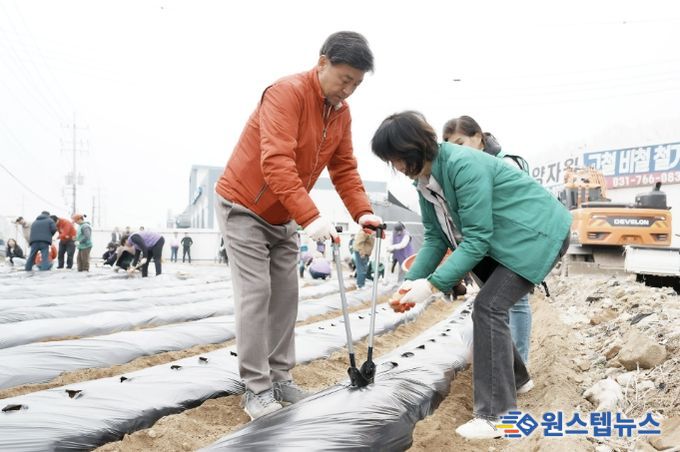 이번 행사에는 새마을지도자 및 부녀회원을 비롯해 지역 내 기관·사회단체 회원, 능평동 행정복지센터 직원 등 40여 명이 참여해 감자 식재 작업을 진행했다.