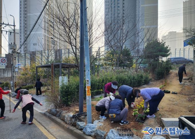 이번 행사는 마을을 사랑하는 주민들의 자발적인 참여로 이뤄졌다. 양지편 경로당 어르신들과 동 직원 등 20여 명은 봄의 전령사로 불리는 팬지와 비올라 300본을 호봉골 소공원 주변에 정성껏 심었다.