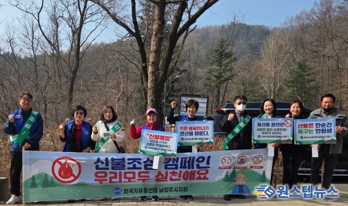 이날 캠페인에는 한국자유총연맹 남양주시지회 회원 10명이 참여해 주요 등산로 입구와 탐방로 일대에서 산불 예방 홍보 활동을 펼쳤다.