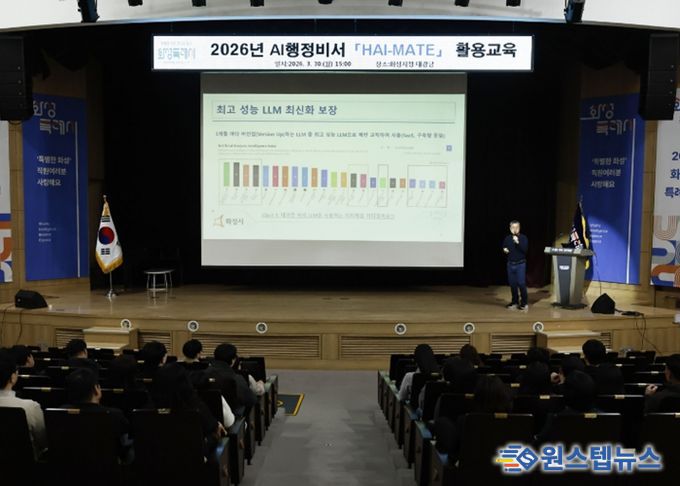 원스텝뉴스 이병희 기자 | 화성특례시는 30일 AI업무지원 서비스 ‘HAI-MATE’ 활용 교육을 실시했다