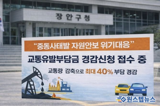 원스텝뉴스 이병희 기자 | 수원시 장안구는 중동사태 자원안보 위기 주의경보에 따른 승용차 이용 감소 유도 및 에너지 절약 정책의 일환으로, 교통량 감축활동을 이행한 시설물을 대상으로 교통유발부담금 경감신청을 받는다고 밝혔다.