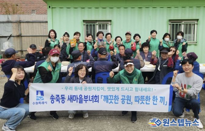 원스텝뉴스 이병희 기자 | 수원시 장안구 새마을지도자송죽동부녀회가 지난 30일, 만석공원을 청소하고 가꾸는 공원지킴이들을 대상으로 떡국 나눔 행사를 개최했다.