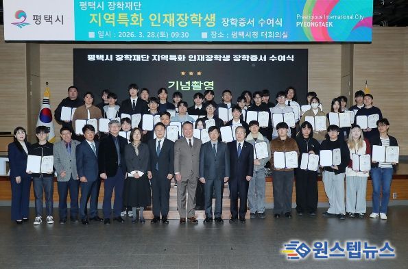 원스텝뉴스 이병희 기자 | 평택시 장학재단은 지난 3월 28일 평택시청 대회의실에서 '2026년도 지역특화 인재 장학생 장학증서 수여식'을 개최했다.