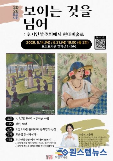 원스텝뉴스 천규영 기자 | 김포시 모담도서관은 5월, 예술특화 강연 ‘보이는 것을 넘어: 후기인상주의에서 현대미술로’를 개최한다.