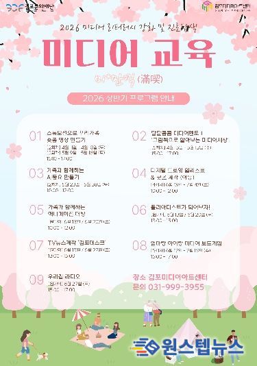 원스텝뉴스 천규영 기자 | (재)김포문화재단은 김포미디어아트센터에서 오는 4월부터 11월까지‘미디어 리터러시 강화 및 진로탐색 프로그램’을 본격 추진한다고 밝혔다. 이번 사업은 디지털 환경 변화에 대응하여 시민의 미디어 이해 및 활용 역량을 체계적으로 강화하고, 창의적 미래 인재 양성을 위한 교육 기반을 구축하는 데 목적이 있다.