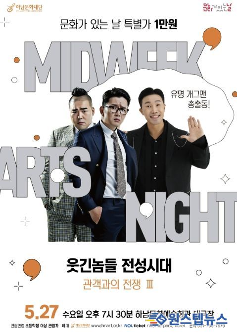 원스텝뉴스 천규영 기자 | 하남문화재단은 오는 2026년 5월 27일 오후 7시 30분, 하남문화예술회관 대극장에서 ‘문화가 있는 날’ 기획공연으로 '웃긴놈들 전성시대, 관객과의 전쟁 Ⅲ'를 선보인다.