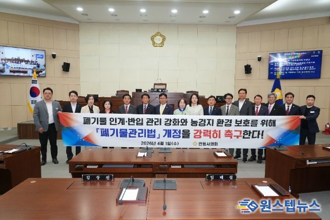 원스텝뉴스 이병희 기자 | 안동시의회 김순중 의원은 1일 열린 제265회 임시회 제2차 본회의에서 폐기물 인계·반입 관리 강화 및 농경지 환경 보호를 위한 '폐기물관리법' 개정 촉구 건의안을 대표발의하고, 폐기물 인계·반입 단계 관리의 실효성 강화를 위한 제도 개선을 강력히 촉구했다.