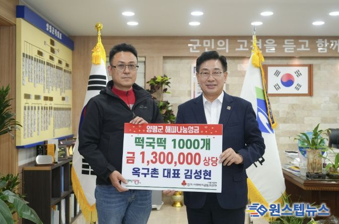 원스텝뉴스 이병희 기자 | 양평군은 지난 1일 농업회사법인 ㈜옥구촌한우가 지역 내 취약계층을 위해 130만 원 상당의 떡국떡 1,000개를 기탁했다고 밝혔다.