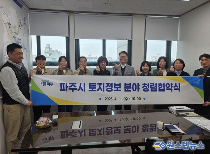 원스텝뉴스 이병희 기자 | 파주시는 지난 1일 지적측량 수행기관인 한국국토정보공사 파주지사와 ‘토지정보 분야 청렴협의체’를 구성하는 내용으로 협약을 체결했다.
