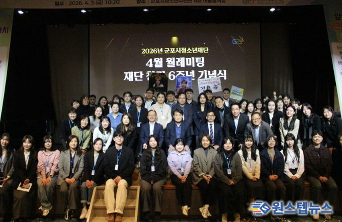 원스텝뉴스 이병희 기자 | 군포시청소년재단은 4월 3일 군포시청소년수련관 청소년어울림극장에서 4월 월례미팅을 열고, 창립 6주년을 맞아 미래도약 의지를 다지는 자리를 마련했다. 이날 행사에는 군포시청소년재단 임직원, 화용선차예문화연구소 등 80여 명이 참석했다.