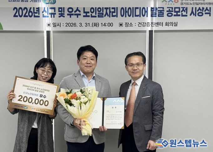경기도노인일자리지원센터가 주관한 이번 공모전은 경기도 내 노인일자리수행기관을 대상으로 153건의 신규 및 우수사업이 접수됐고, 3월 31일 경기도인재개발원에서 시상식이 진행됐다.