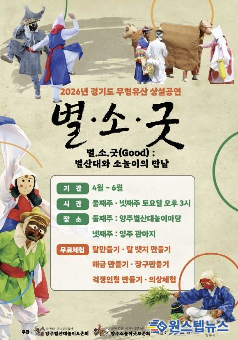원스텝뉴스 천규영 기자 | 양주시는 시민들이 일상 속에서 전통문화를 보다 쉽게 접하고 즐길 수 있도록 양주시 무형유산 상설공연 ‘별・소・굿’을 운영한다.
