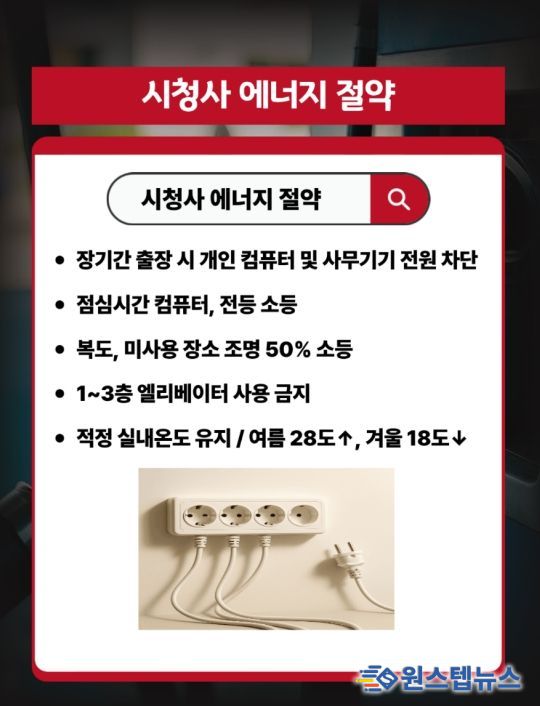 시에 따르면 구체적인 절감 대책으로 하절기 28℃ 이상, 동절기 18℃ 이하의 적정 실내온도 준수를 철저히 관리한다. 또한 복도 조명 격등 운영, 승강기 운행 제한, 중식 시간 사무실 조명 및 컴퓨터 끄기, 화장실 핸드드라이어 전원 차단 등 일상 속에서 실천 가능한 항목들을 전방위적으로 추진한다.