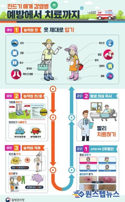 시는 야외활동 후 2주 이내 발열, 구토, 설사 등의 증상이 나타날 경우 단순 감기 증상으로 오인하지 말고 반드시 의료기관을 방문해 성묘, 벌초, 농작업 등 야외활동 이력을 알린 뒤 진료를 받을 것을 강조했다.