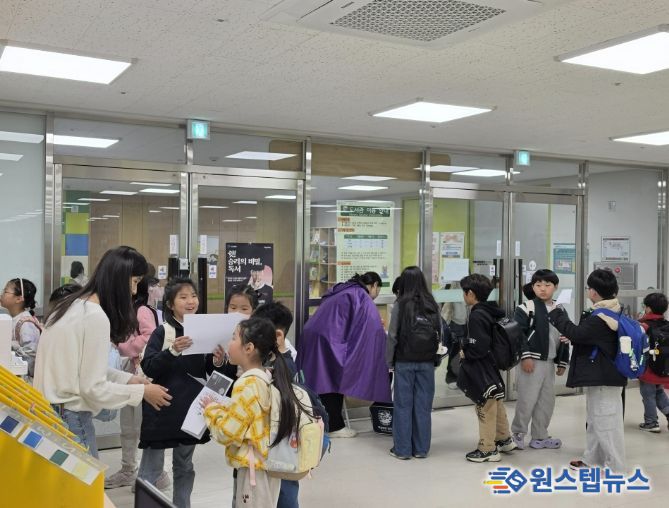 행사는 학년군별 특성을 반영한 참여형 프로그램으로 구성됐다. 저학년은 ‘그려줘, 우리 도서관 지도’ 활동을 통해 도서관 공간을 관찰하고 그림으로 표현하며 공간 이해력과 친숙함을 높인다. 고학년은 ‘책 속 한 줄, 손끝으로 전하는 마음’ 프로그램을 통해 인상 깊은 문장을 손글씨로 표현하며 책의 의미를 되새기고 감성을 공유한다.