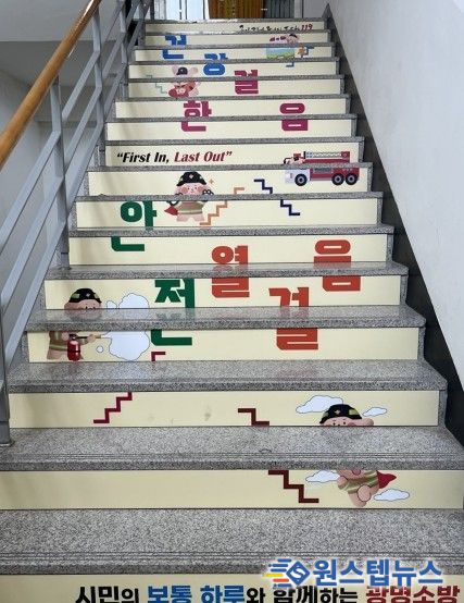 원스텝뉴스 이병희 기자 | 광명소방서는 직원들의 건강 증진과 활기찬 근무환경 조성을 위해 본서 주계단에 ‘안전건강계단’을 설치했다고 밝혔다.