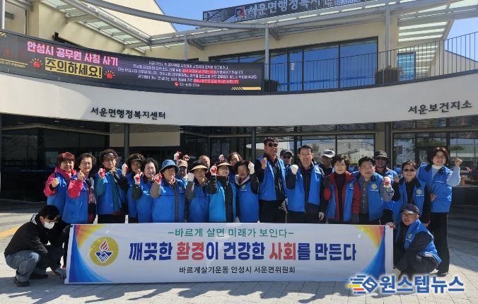 원스텝뉴스 이병희 기자 | 안성시 서운면 바르게살기위원회는 지난 7일, 회원 30여 명이 참여한 가운데 쾌적한 마을 환경 조성을 위한 새봄맞이 대청소에 나섰다.