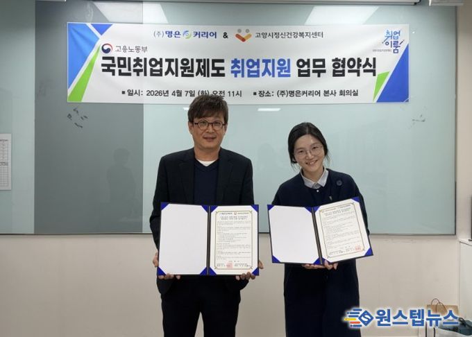 원스텝뉴스 이병희 기자 | 고양특례시 정신건강복지센터는 지난 7일 ㈜명은커리어와 업무협약(MOU)을 체결했다. 해당 협약은 고양 시민의 취업 지원과 정신건강 증진을 위해 진행됐다.