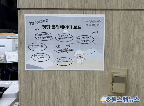정유진 미래교육과장은 “구성원들이 직접 청렴 문구를 고민하고 공유하는 과정에서 청렴이 자연스럽게 생활화되는 효과를 기대한다”며, “앞으로도 지속적이고 생활밀착형인 청렴 시책을 꾸준히 이어 나갈 계획”이라고 전했다.