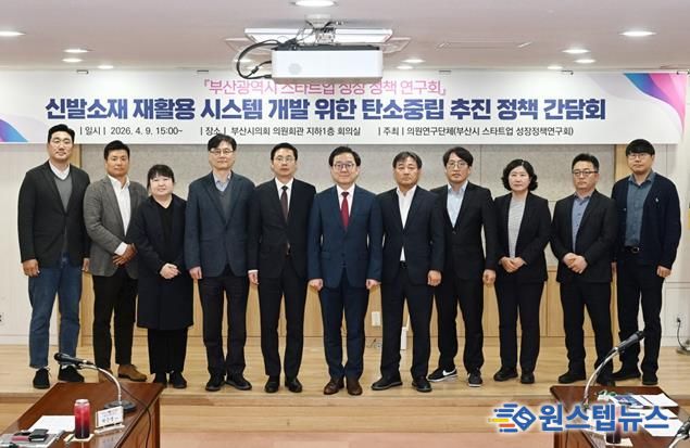 원스텝뉴스 이병희 기자 | 부산광역시의회 의원연구단체인 '부산광역시 스타트업 성장 정책 연구회'는 4월 9일 오후 3시, 부산시의회 의원회관 회의실에서 ‘신발소재 재활용 시스템 개발을 통한 탄소중립 추진 정책 간담회’를 개최했다.