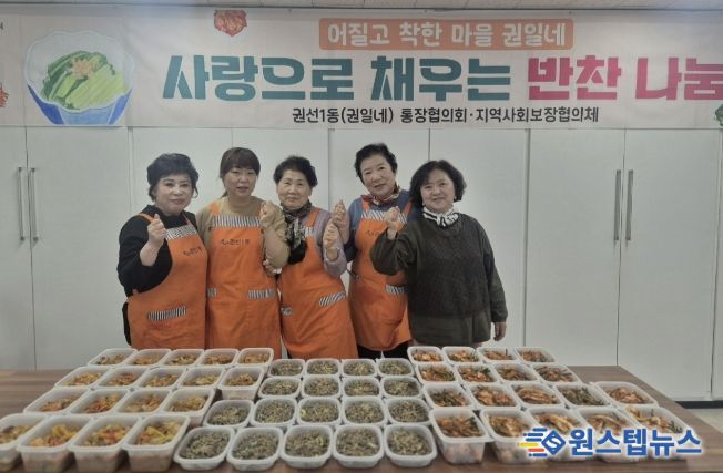 이은태 권선1동 통장협의회장은 “내 가족이 먹는다는 생각으로 정성껏 만든 만큼, 이웃분들이 맛있게 드셨으면 좋겠다”며, “한마음으로 애써주신 통장협의회 위원분들께도 감사드린다”고 말했다.