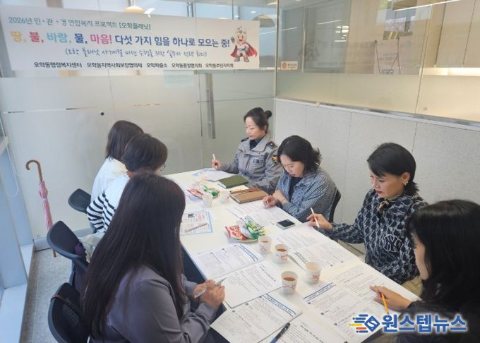 오학동 관계자는 “첫 술에 배부르기보다 5대 기관이 서로의 패를 맞추고 정보를 공유하며 단단한 기초를 다지는 과정이 무엇보다 중요하다.”며, “공모전 선정이라는 성과에 걸맞게 실무진의 치밀한 기획을 거쳐 주민이 체감하는 수호 체계를 선보일 수 있도록 노력하겠다.”고 밝혔다.