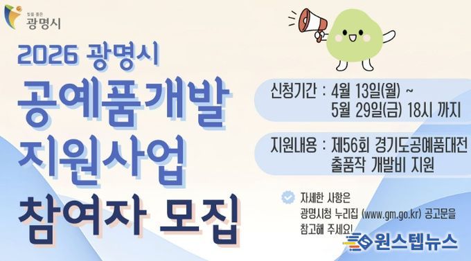 최혜민 광명시장 권한대행(부시장)은 “이번 사업으로 지역 공예인들의 창작 의욕을 높이고 우수한 작품이 발굴되길 바란다”며 “앞으로도 공예산업이 지역경제의 한 축으로 성장할 수 있도록 다양한 지원을 지속해 나가겠다”고 밝혔다.
