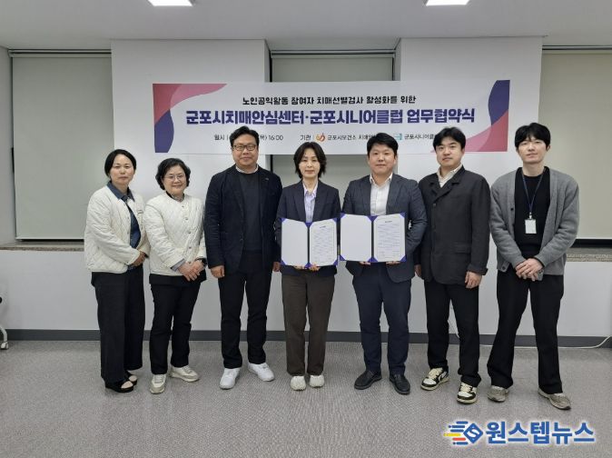 원스텝뉴스 이병희 기자 | 군포시치매안심센터는 4월 9일 군포시시니어클럽과 업무협약을 체결하고 노인공익활동 참여자를 대상으로 한 치매선별검사 확대에 나선다고 밝혔다.