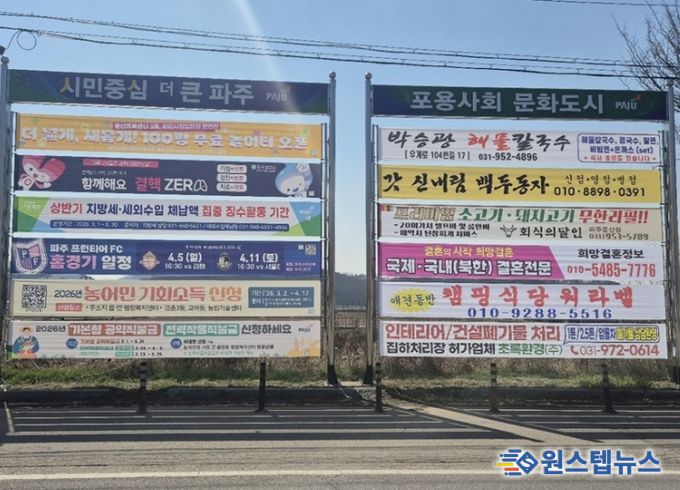 한편, 파주시는 현재 245기의 현수막 지정게시대를 운영 중이며, 노후시설을 연차적으로 교체해 안전하고 체계적인 관리 체계를 구축해 나갈 계획이다.