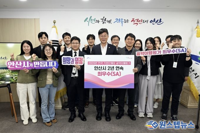 원스텝뉴스 이병희 기자 | 안산시는 한국매니페스토실천본부가 전국 기초자치단체장을 대상으로 실시한 ‘2026 공약 이행 및 정보공개 평가’에서 최고 등급(SA)을 받았다고 10일 밝혔다. 시는 지난해에 이어 이번에도 최고 등급을 받았다.