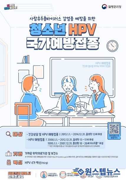 현재 12세부터 17세 여성 청소년(2008~2014년생)과 18세부터 26세 저소득층 여성(1999~2007년생)을 대상으로 사람유두종바이러스(HPV) 4가 백신, 2~3회 무료 접종을 지원한다. 또한 2013~2014년생의 경우 사춘기 성장 발달 등 신체 변화와 관련된 건강상담도 함께 받을 수 있다.