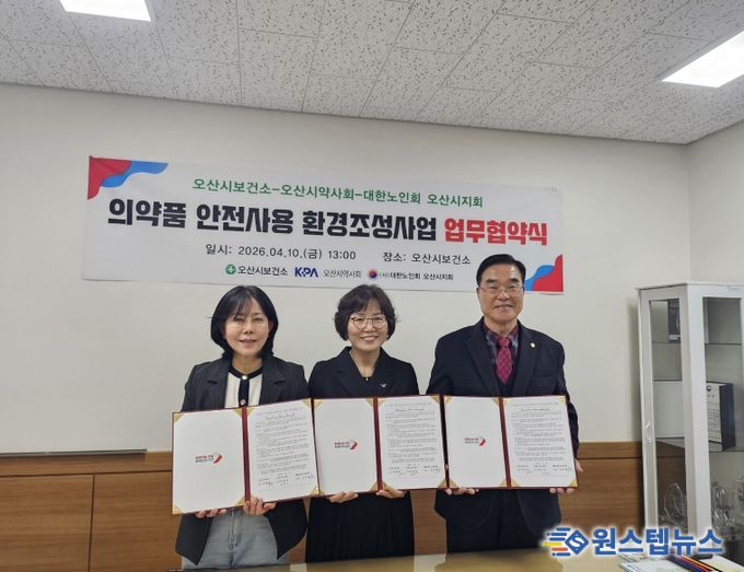 원스텝뉴스 이병희 기자 | 오산시는 지난 10일 오산시약사회, 대한노인회 오산시지회와 함께 ‘2026년 의약품 안전사용 환경조성사업’ 추진을 위한 업무협약을 체결했다고 밝혔다.