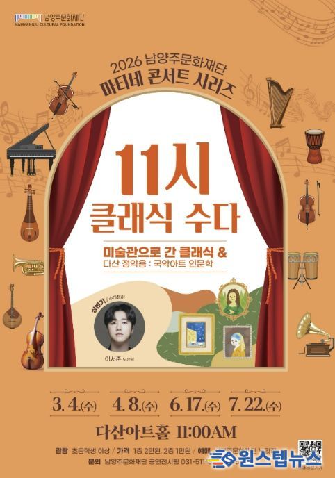 주광덕 남양주시장은 “문화는 시민의 삶을 풍요롭게 하고 지역 공동체를 더욱 단단하게 만드는 중요한 기반”이라며 “‘남양주 문화요일’ 집중 운영을 통해 문화 향유의 체감도를 높이고 남양주만의 차별화된 문화정책을 지속적으로 확대해 나가겠다”고 전했다.