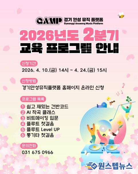 원스텝뉴스 이병희 기자 | 안성맞춤아트홀로 사무실을 임시 이전한 경기안성뮤직플랫폼이 4월 10일부터 24일까지 ‘2026년 2분기 교육 프로그램’ 참여자를 모집한다.