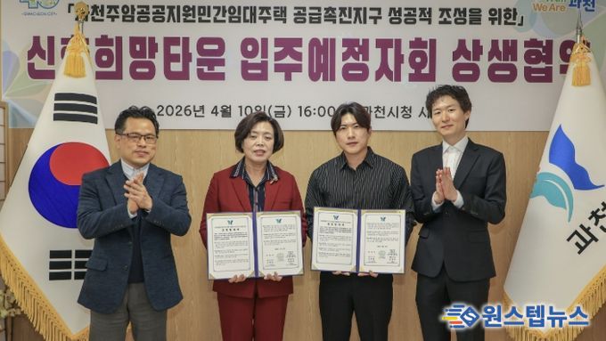 원스텝뉴스 이병희 기자 | 과천시는 과천주암지구의 원활한 조성을 위해 지난 10일 시장 집무실에서 ‘과천주암 C2블록 신혼희망타운 입주예정자회’와 ‘과천주암지구 기반시설 확충 및 정주여건 개선을 위한 민관 상생협약’을 체결했다.