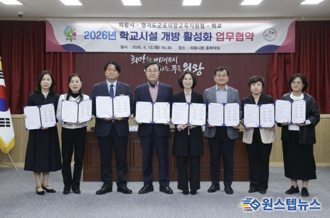 원스텝뉴스 이병희 기자 | 의왕시가 4월 13일 시청 중회의실에서 군포의왕교육지원청 및 관내 8개 학교와 ‘학교시설 개방 활성화 추가 업무협약’을 체결했다.