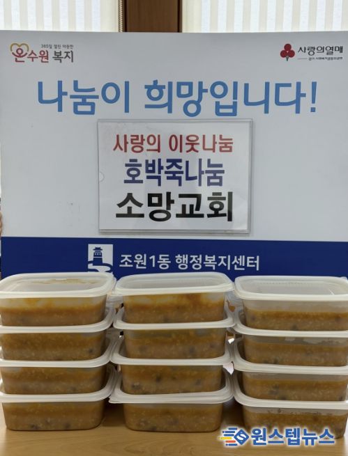 원스텝뉴스 이병희 기자 | 수원시 장안구 조원1동 지역사회보장협의체와 2025년 7월 업무협약을 맺은 소망교회가 지난 14일, 조원1동 관내 취약계층 20명을 위해 호박죽을 지원했다.