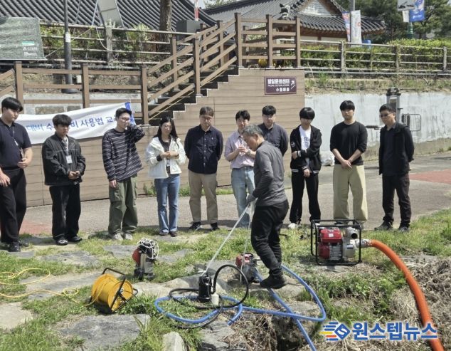 이번 교육은 2인 1조로 편성되어, 전문가의 시범 후 엔진펌프와 수중펌프 등 장비를 직접 가동해 보는 실습 위주로 진행됐다.