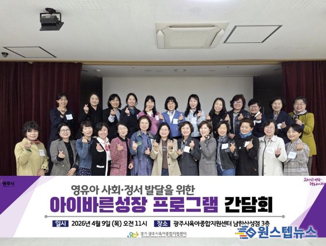 원스텝뉴스 이병희 기자 | 광주시 육아종합지원센터는 지난 9일 ‘아이바른성장지원사업’을 확대 추진하기 위한 ‘아이바른성장 프로그램’ 사회·정서 발달 프로그램 간담회를 개최했다.
