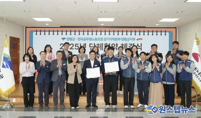 원스텝뉴스 이병희 기자 | 양평군은 지난 14일 군청 대회의실에서 전국공무원노동조합 경기지역본부 양평군지부와 ‘2025년도 단체협약 체결식’을 개최하고, 상호 신뢰를 바탕으로 한 협력적 노사관계 구축에 나섰다.