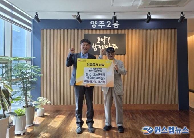 원스텝뉴스 이병희 기자 | 양주2동은 지난 15일 LH13단지 이영 통장(노인회장)이 이웃 돕기 성금 50만 원을 기탁했다고 밝혔다.