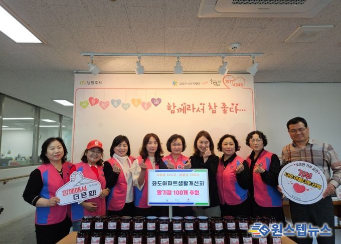 원스텝뉴스 이병희 기자 | 남양주시는 지난 15일 화도아파트생활개선회가 지역 취약계층을 위해 수제 딸기잼 100병을 동부희망케어센터에 전달했다고 16일 밝혔다.