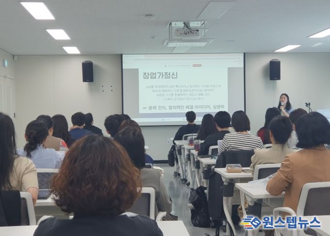 창업가 정신 함양 교육은 ▲창업가 정신의 의미 ▲수업 적용 사례 ▲창의적 아이디어 도출과 실행 중심 수업 설계 등으로 구성됐다. 이를 통해 학생들의 창의성, 도전정신, 문제해결력, 의사소통역량 등 미래 핵심 역량을 기를 수 있도록 지원했다.