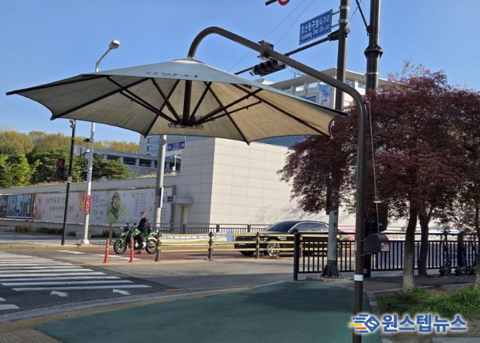 일산동구는 교통섬과 신호등 앞 등 그늘이 없는 지역에 3~5m 규모의 그늘막을 설치해 강한 햇빛으로 인한 보행자 불편을 해소하고 있다.