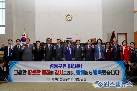 14명의 의원들은 지난 4년간의 의정활동에 아낌없는 성원을 보내준 성동구민에게 깊은 감사를 전하고, 제9대 의회의 임기가 끝나도 구민의 행복과 성동구의 발전을 위해 기꺼이 힘을 보태겠다고 다짐했다.