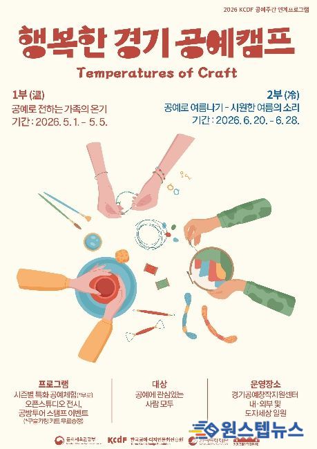 원스텝뉴스 천규영 기자 | 한국도자재단이 오는 5월 1일부터 경기공예창작지원센터(여주) 일원에서 체험·전시·이벤트를 결합한 참여형 프로그램 ‘2026 행복한 경기 공예 캠프’를 개최한다.