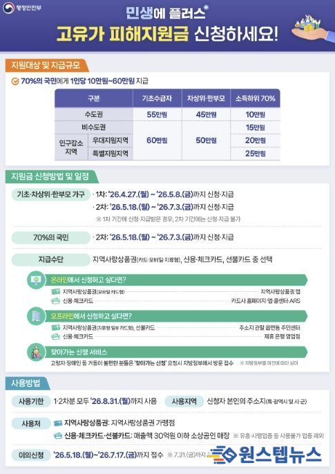이번 지원금은 고유가·고환율·고물가로 어려움을 겪는 시민들의 생활 안정을 돕고, 지역 내 소비를 촉진해 소상공인과 자영업자의 매출 회복에도 힘을 보태기 위한 조치다.
