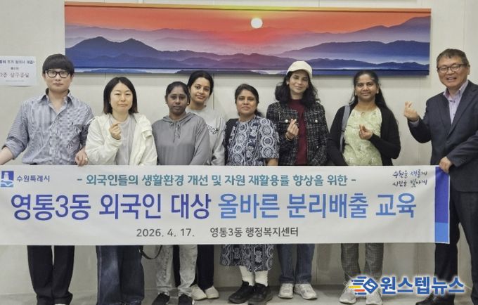 한편, 영통3동 행정복지센터는 관내 수원출입국외국인청을 방문해 ‘찾아가는 외국인 분리배출 교육’을 실시할 계획이다.